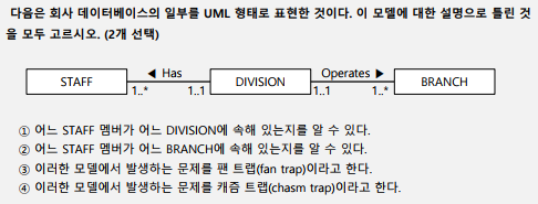 문제는 STAFF : DIVISION = N:1, DIVISION : BRANCH = 1:N -> N:1:1:N의 관계를 갖는 fan trap임