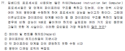 4) 구조 해저드(structural hazard)문제를 해결하기 위해 지연 분기(delayed branch) 또는 루프 버퍼 기법을 사용한다.