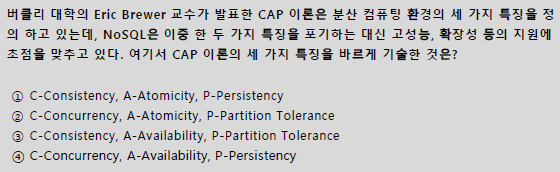 ▣ NoSQL 특징 및 제품 분류, CAP 이론, Consistency 일관성, Availability 가용성, Partition Tolerance 파티션 허용, 분할내성, 부분 결함 허용