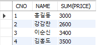 FROM (SELECT CNO, SUM(PRICE) S