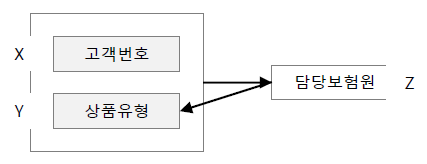 보이스/코드(BCNF) 분할 결과는 (X, Z)와 (Y, Z)
