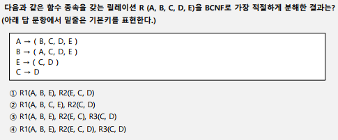 ∴ R1(A,B,E), R2(E,C), R3(C,D) 이거나 R1(B,A,E), R2(E,C), R3(C,D) 로 분해됨