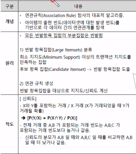 ▣ 연관규칙(Association)_지지도, 신뢰도, 향상도, Apriori, 빈발항목