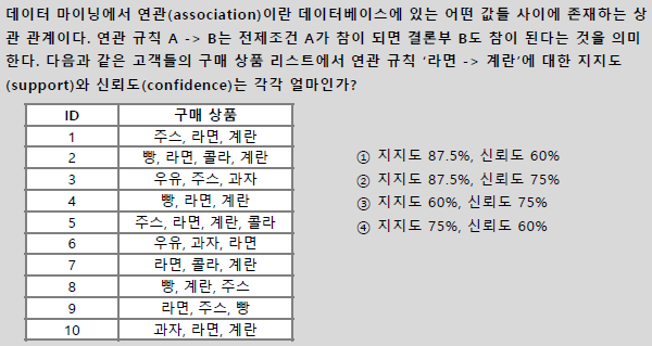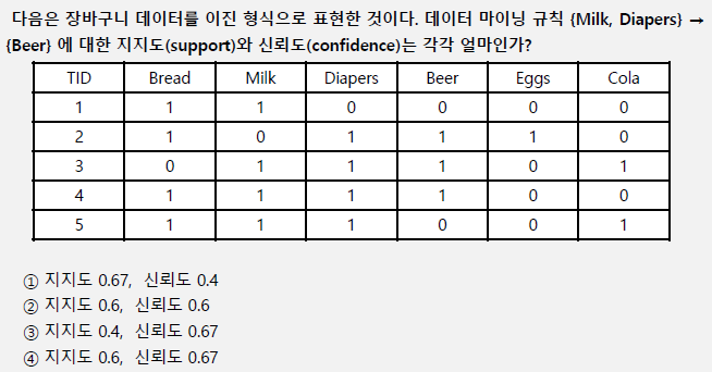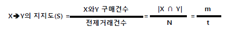 (지지도가 높을수록 연관 규칙의 의미가 높아짐)