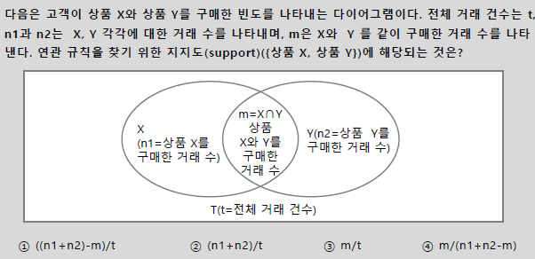 2) X→Y의 신뢰도 = P(X∩Y)/P(X)=(15/100)/(20/100) = 15/20 = 0.75