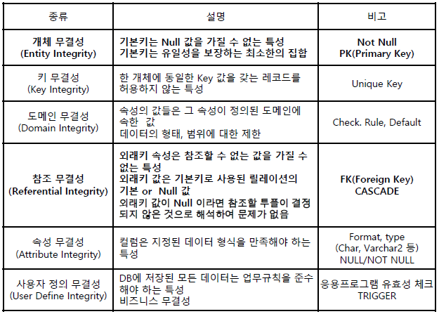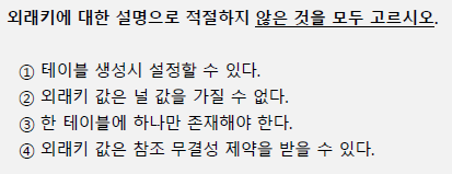 한 릴레이션에 속한 어떤 속성 집합(FK)의 값이 반드시 다른 릴레이션의 기본키 값이어야 할 때 이 FK를 외래 키라고 함 |