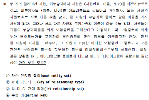 피부양자 : 약한 엔티티 집합(weak entity set)