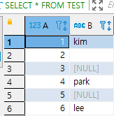 INSERT INTO TEST VALUES (6, 'lee');