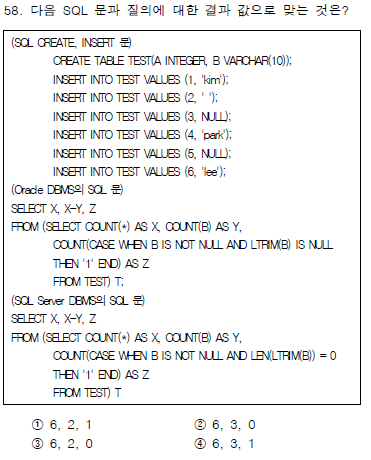 -- 2017년 정보시스템감리사 DB 58번 SQL