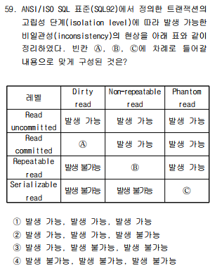 ▣ 동시성 제어_ 트랜잭션 격리 수준(isolation Level) 고립단계_갱신 분실 Lost Update, 부정판독 Dirty Read, 비반복판독 Non-Reatable Read, 가상 판독 Phantom Reads, 연쇄 복귀, 모순성 , 독립성 레벨, 병행수행도, 고립성