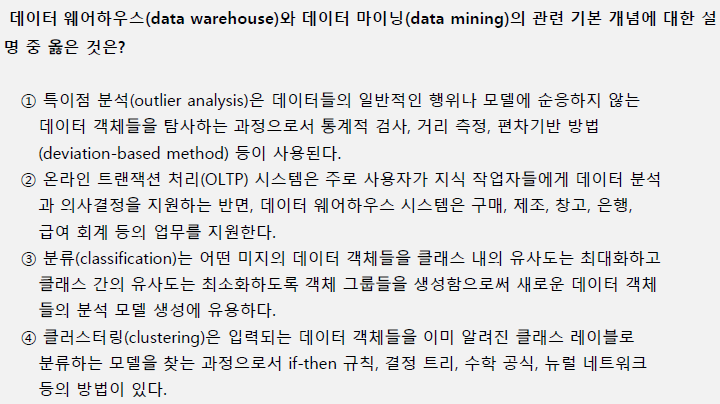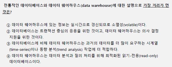 2) 온라인 트랜잭션 처리(OLTP) 시스템과 데이터 웨어하우스 시스템의 설명이 서로 바뀌어 있음